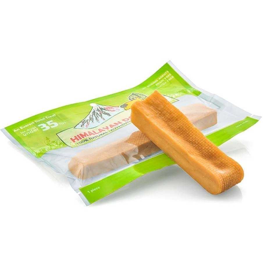 Best for dogs 20 to 40 pounds. Himalayan Dog Chew comes from an ancient recipe of the people of the Himalayas. It is made using traditional methods with Yak and Cow Milk and all natural products and no chemicals or preservatives. Himalayan Dog Chew is made by boiling the milk and coagulating it in such a way that all lactose is transferred in the whey with almost zero lactose in the resulting cheese. After separating the whey from the cheese, it is dried and cooked in warm smoke for months to get rid of all the lactose, or is broken down to easily digesting lactose and glucose. Hence, after 4 1/2 months of process the lactose free chewing treat that contains all other milk component is made for the four legged ones. Now they can chew on milk. Whether the canine is growing or grown, just as all mammals need to drink milk and Himalayan dog chew is the best and only way of introducing milk nutrition to them in the way they like – which is chewing, not drinking. Ingredients: 100% Yak and Cow Milk. Salt and Lime Juice. Guaranteed Analysis: Crude Protein, min. 52.6% Crude Fat, min. 0.9% Ash, max. 6.0% Moisture, max. 10.2% Measurements: Due to the method of process and cut of these chews, all measurements are approximate: Small 4 pack – 2 1/2 inch x 1 inch x 1 inch Med – 5 inch x 1 1/4 inch x 3/4 inch Large – 5 inch x 1 1/2 inch x 3/4 inch XL – 6 1/2 inch x 1 1/2 inch x 1 inch.
