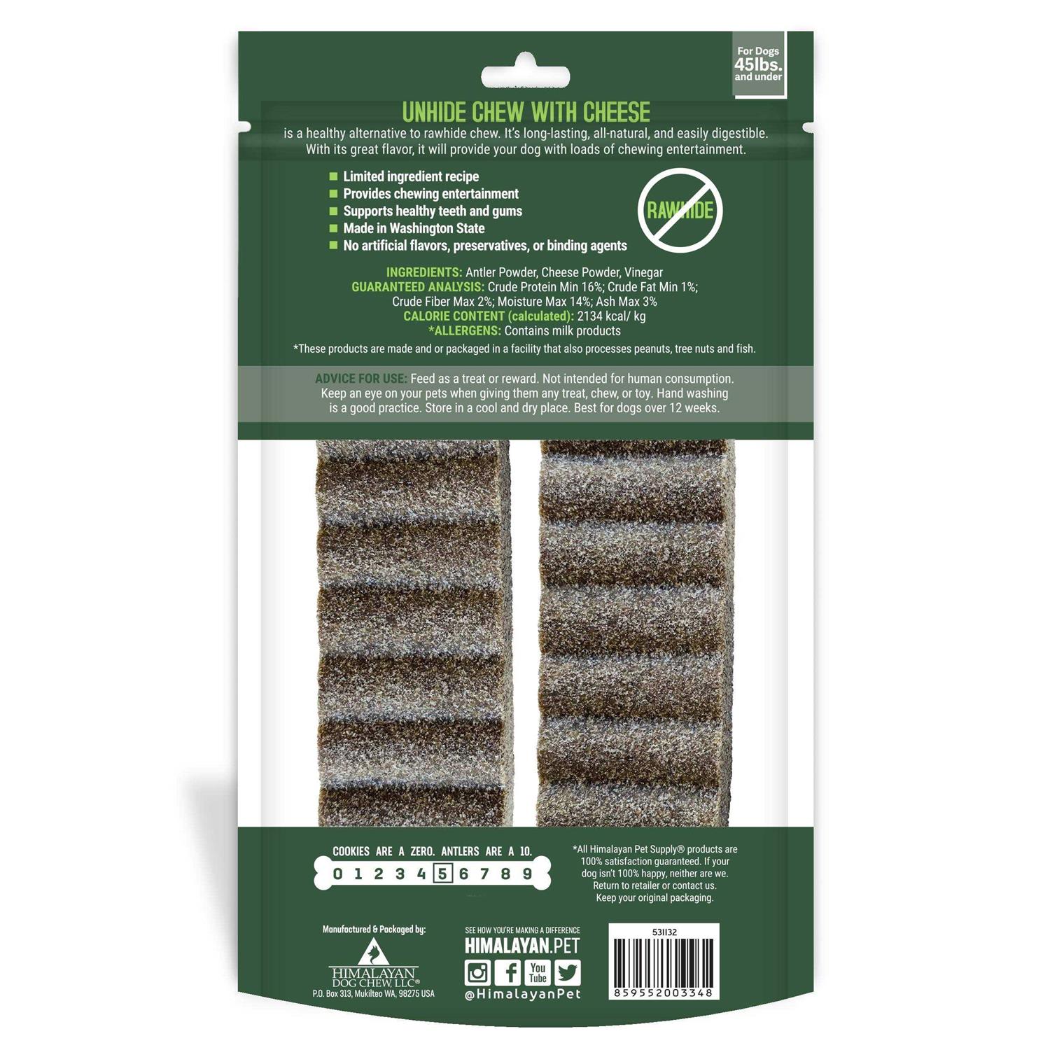 Key Benefits USA made with a limited ingredient recipe Provides chewing entertainment Supports healthy teeth and gums No artificial flavors, preservatives, or binding agents Just say NO to rawhide! Unhide is an innovative natural cheese and antler chew that is long-lasting, all-natural, and easily digestible. With its excellent flavor, you will provide your dog with loads of chewing entertainment. Unhide is proudly handcrafted in Washington State. As a natural alternative to rawhide chews, Unhide is free from lactose, grain, gluten, corn, and soy, and contains absolutely no artificial flavors, preservatives, or binding agents. This limited ingredient recipe is great for dogs of all ages and sizes!