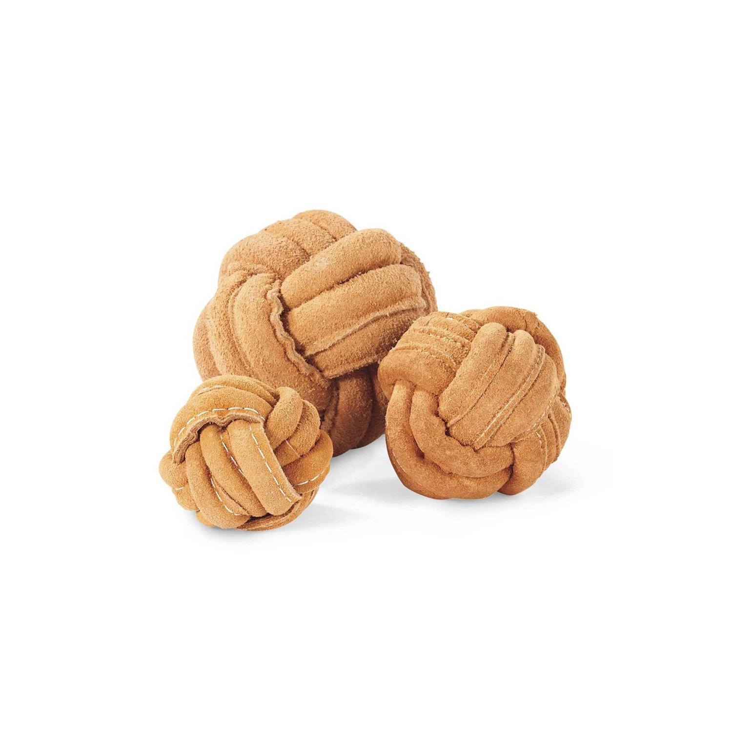 The ball that any other ball can only aspire to be! Huggle-Hide Balls are innovative, ball-shaped chew toys that deliver hours of safe, all-natural satisfaction for chew-obsessed pups. Made from tanned water buffalo with tanned cowhide in the middle and stuffed with cotton rope, these all-natural materials deliver the satisfaction of synthetic rawhide using all- natural sources.
