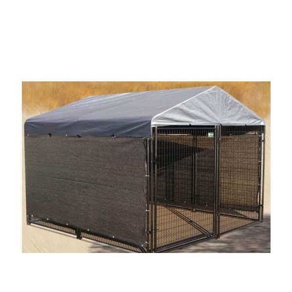 Lucky Dog Windscreen Shade ClothThis all-weather shade cloth helps protect your pet from wind, snow, and rain. Features heavy-duty construction with brass grommets and 24″ spacing; elastic bungies are included. Offers additional side protection for outside dogs in the winter and offers shade comfort for dogs in the summer.