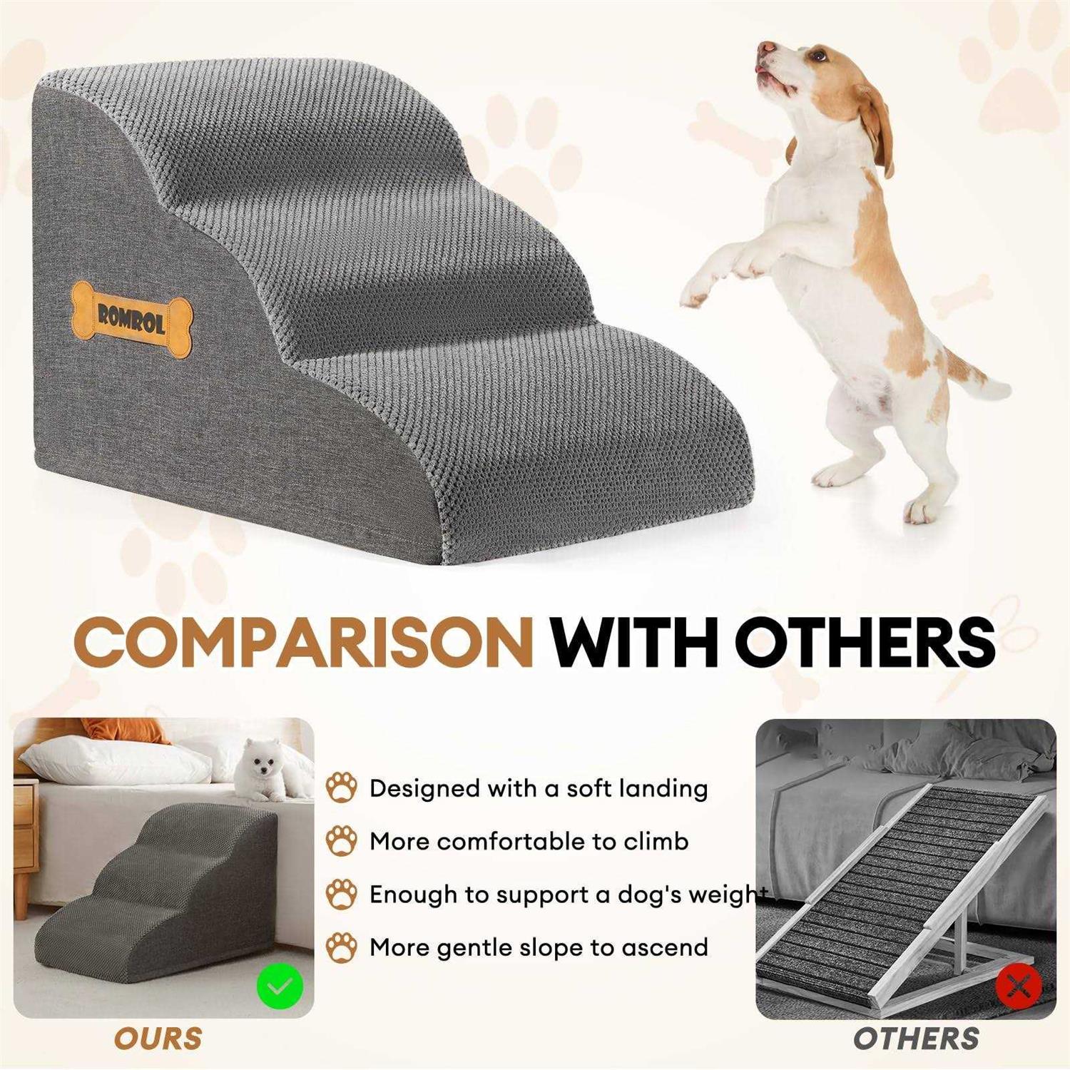 ROMROL Dog Stairs Ramp for Beds Couches,Extra Wide Pet Steps with Durable Non-Slip Waterproof Fabric Cover, Dog Slope Stairs Friendly, 3-Tiers