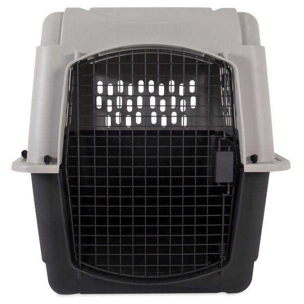 Vibrant Life Pet Kennel Medium 36 inch Dog Crate, Plastic Travel Pet Carrier for Pets 50-70 lb, Grey